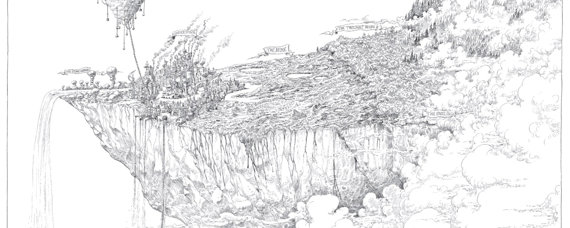 翻開首頁的邊境地圖就令我著迷不已。存於穹蒼濃霧中的邊境大地,有深邃林、微光森林、聖塔砝上城、下城、泥沼和石園。喜歡作者想像出的,那些討人厭的森林怪物、妖精。我想作者一定是將自己生活周遭討厭的人物性格融合進去。森林怪物傲慢、自大、無禮、無腦、貪婪、暴躁、狡詐…簡直就是真實醜陋人性的縮影。獵風而行的飛天海盜則是我的最愛。